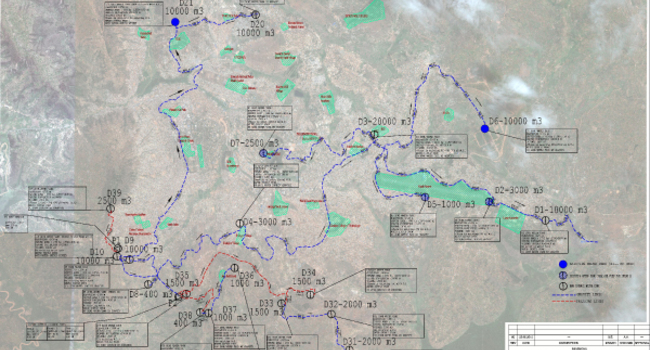 Concept design for drinking water network of Kigali city, the capital of Rwanda. In this context, several feeding zones were created in addition to the existing reservoirs and transmission lines systems. Concept design studies were carried out showing all system elements and operations in order to see the regions to be fed by this expanded system.