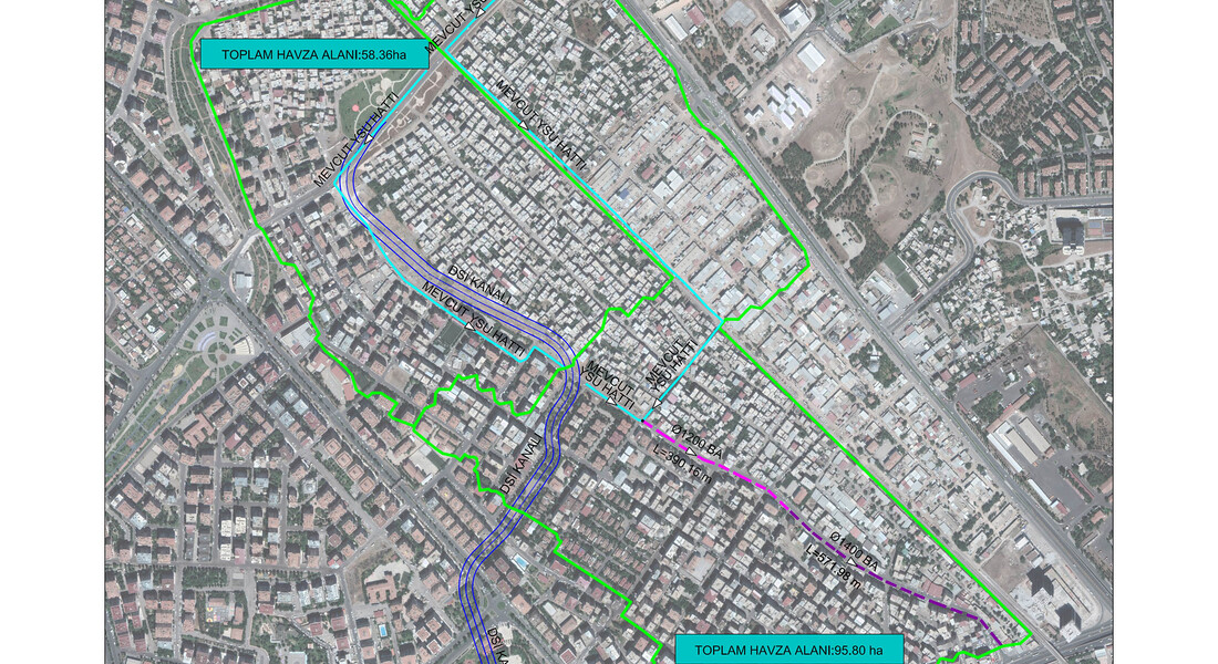 DİSKİ Genel Müdürlüğü’ nün açmış olduğu ihale kapsamında, Huzurevleri Mahallesi’ nin drenaj havzası çıkartılmış ve mevcut yağmursuyu drenajı kollektör hattı tahkik edilmiştir. Tahkik edilen hattın, drenaj havzasından gelecek yağış sularını taşıyamayacağı ortaya konulmuş ve yeni bir drenaj sistemi tasarlanmıştır. İş kapsamında, yağmursuyu uygulama projeleri, özel sanat yapıları ve yaklaşık maliyet çalışmaları yapılmıştır.