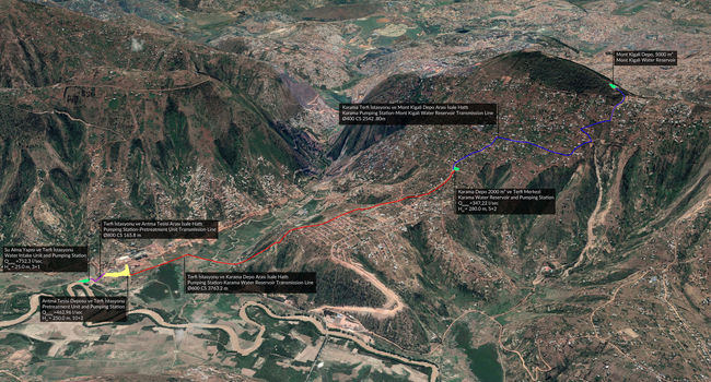 Bu iş kapsamında; içeriğinde yüksek miktarda kuvars ve silis bulunan Nyabarongo Nehri’ nin uygun noktasında su alma yapısı planlanmıştır. Su alma yapısıyla, toplanan hamsudan, dane çapı büyük sürüntü malzemesinin sisteme dâhil edilmemesi için özel bir kum tutucu planlanmıştır. Kum tutucundan alınan hamsu, terfi hattı vasıtasıyla planlanan arıtma tesisine iletilecektir. Arıtılan içme suyu, iki kademeli terfi istasyonları sistemi vasıtasıyla sırasıyla Karama Depo’ ya ve Mont Kigali Depo’ ya iletilecektir.